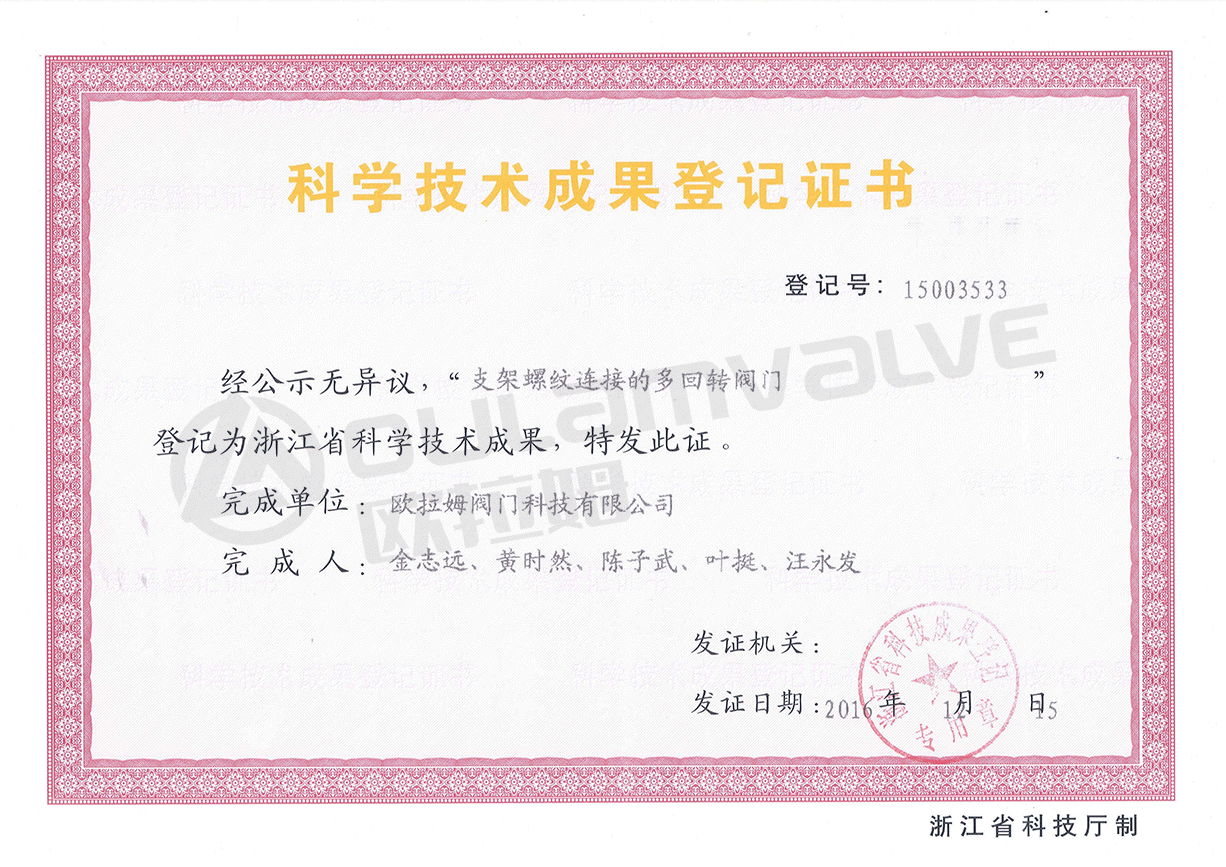 浙江省科學技術成果科學技術成果:支架螺紋連接的多回轉閥門